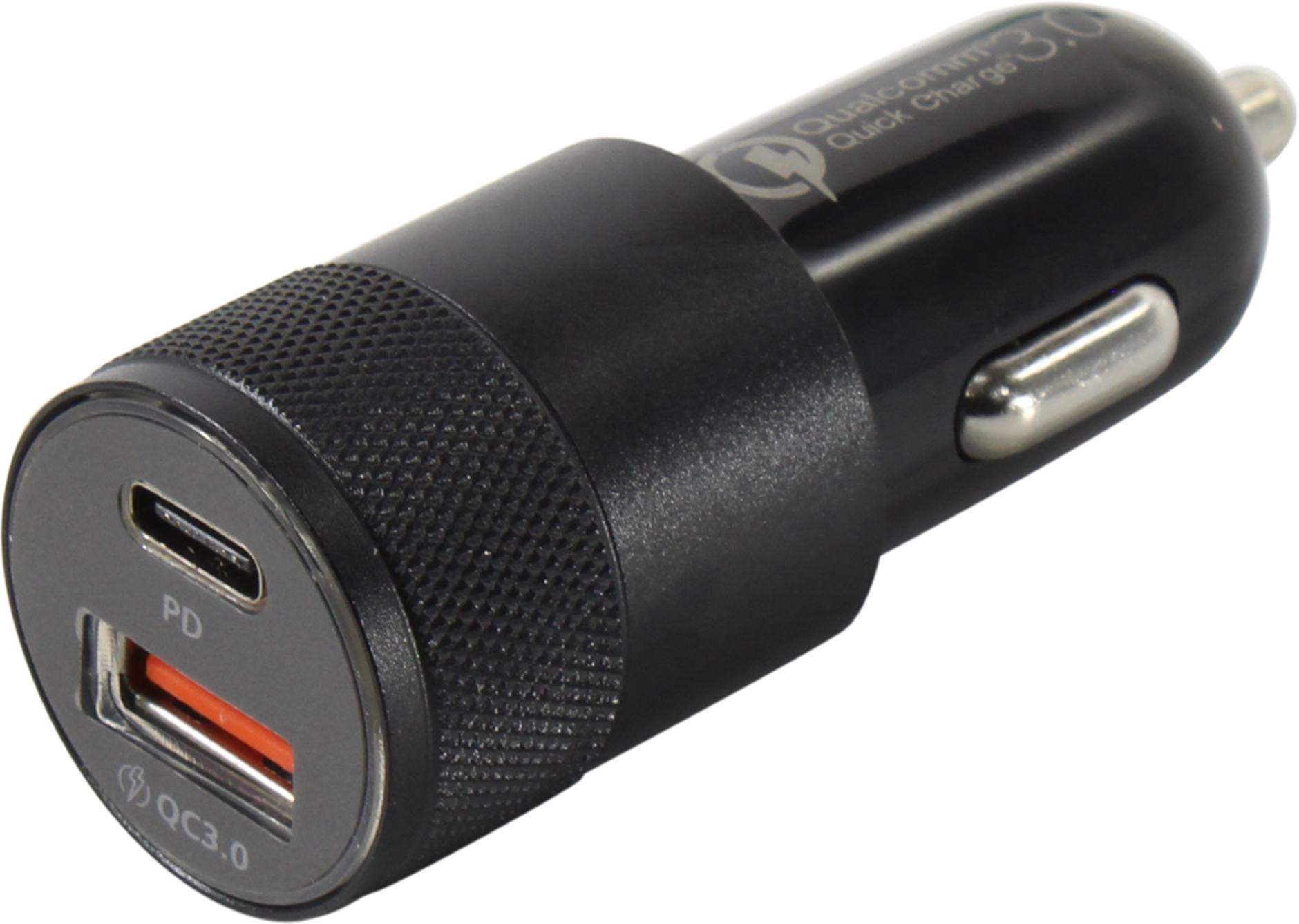 Адаптер авто USB+TypeC Cablexpert UC-CAR24 38Вт 3A QC3.0/PD чёрный пакет (1/200)