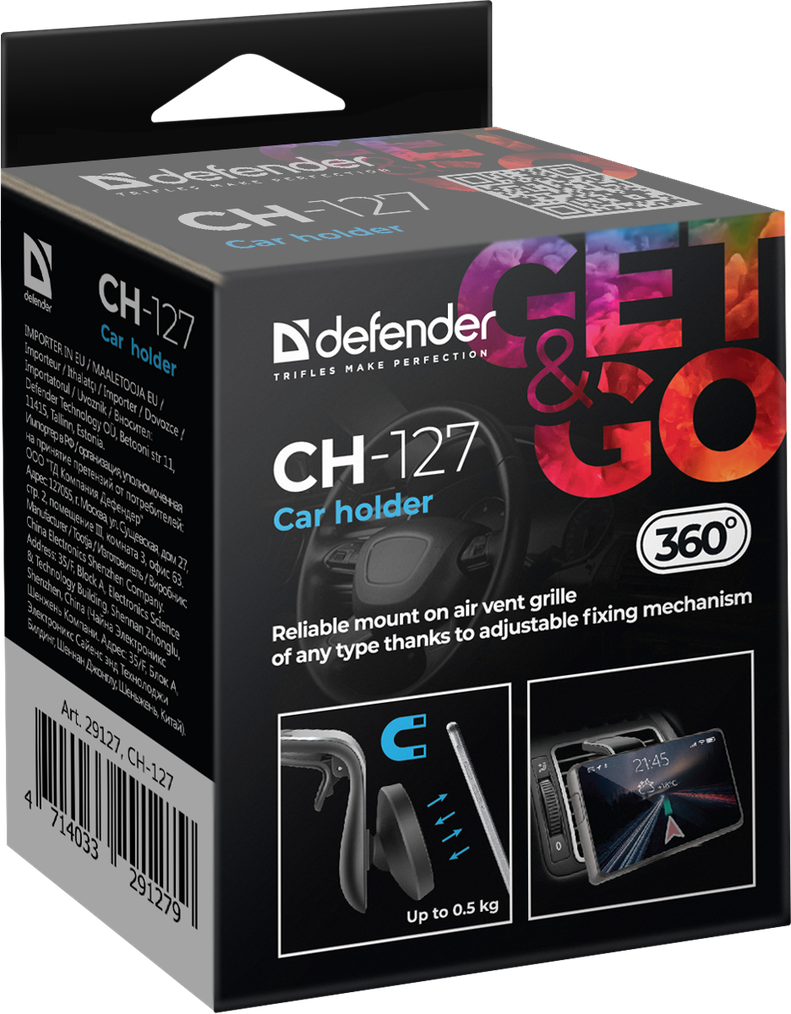 Держатель Defender 127, решетка вентиляции, магнит, черный