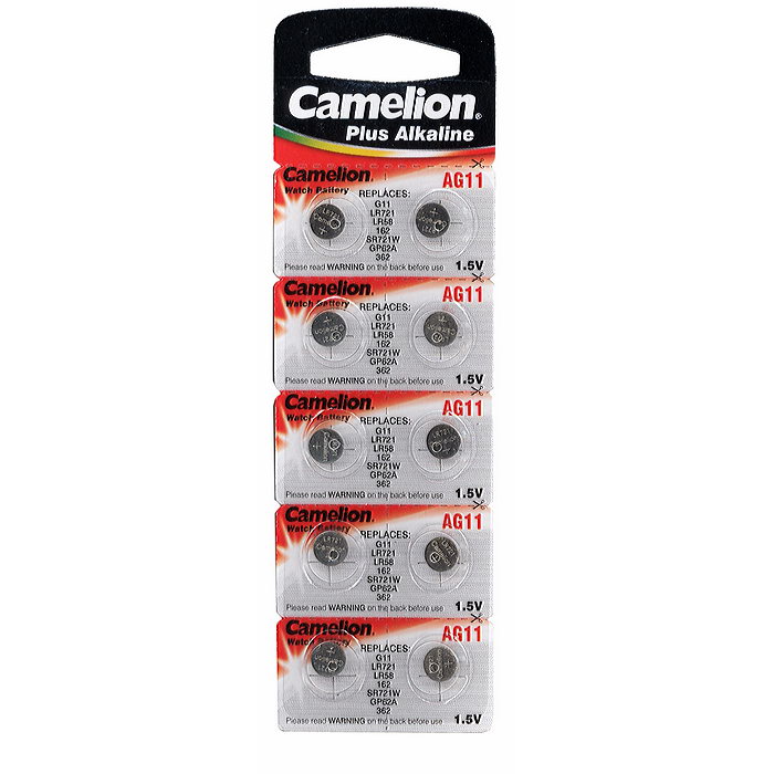 Интернет-магазин «Витрина 59» предлагает купить товар «Батарейка часовая G11 (361/362 LR721 LR58) Camelion 10xBL (100/3600)» по цене: 180.00 руб. за 10 шт Артикул товара - 12819. Вы можете оформить заказ через интернет-магазин или по телефону +7 (950) 45-67-67-6. Дополнительную информацию о продаже товаров из каталога «Батарейки, аккумуляторы» вы можете получить у нашего менеджера. Звоните!