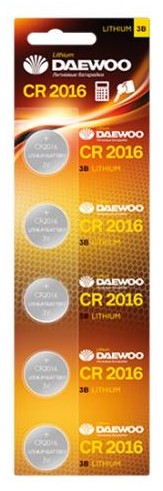 Батарейка литиевая CR 2016 Daewoo 5xBL 3V (100)