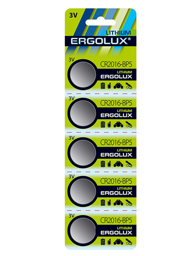 Батарейка литиевая CR 2016 Ergolux 5xBL 3V (50)