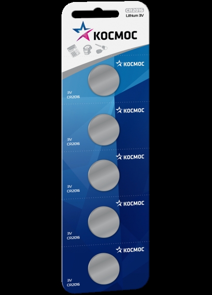 Батарейка литиевая CR 2016 Космос 5xBL 3V (60/600)