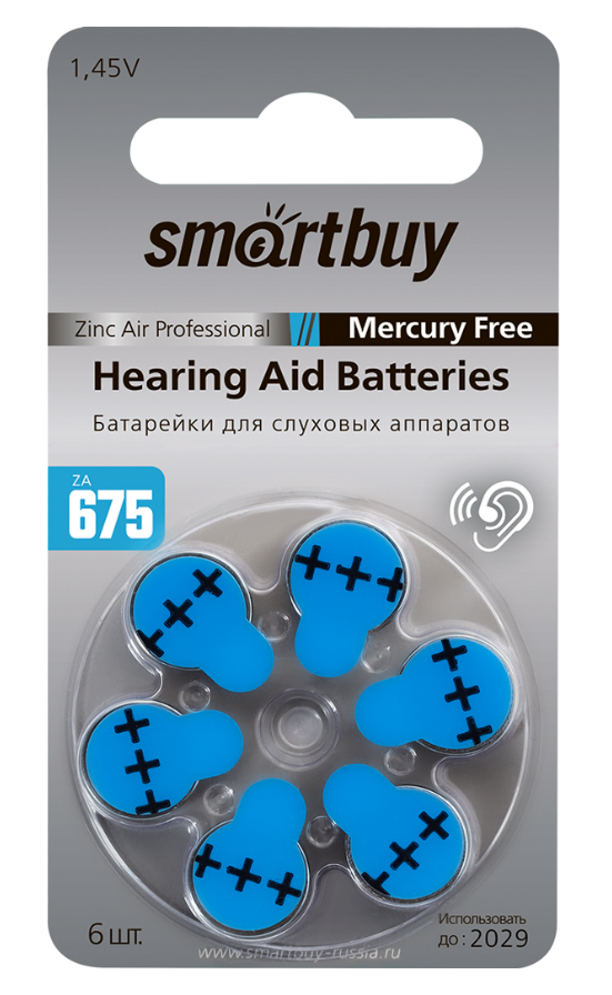 Батарейка для слуховых аппаратов SmartBuy A675 6xBL (60/3000)