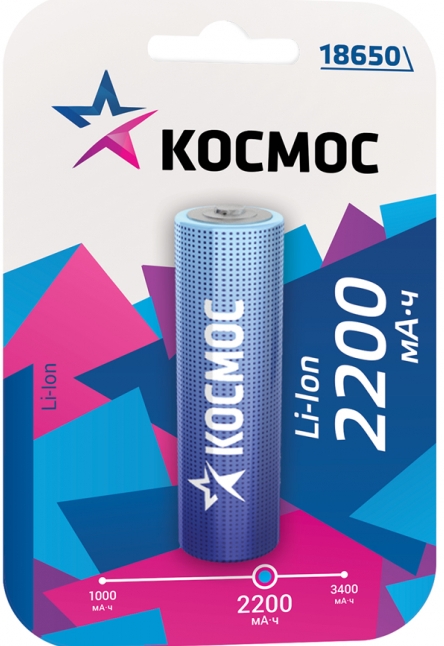 Аккумулятор Li-ion 18650 2200мАч Космос 1xBL 3.7V без защиты выс.конт. (50)