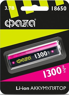Аккумулятор Li-ion 18650 1300мАч Фаzа 1xBL 3.7V без защиты выс.конт. (10)