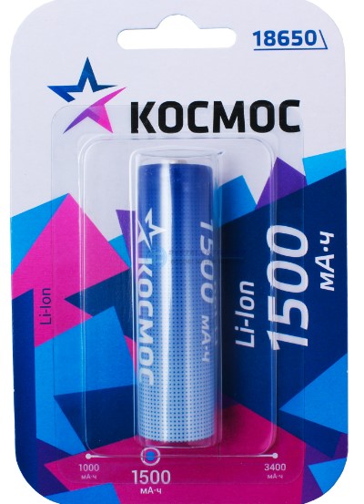 Аккумулятор Li-ion 18650 1500мАч Космос 1xBL 3.7V без защиты выс.конт. (50)
