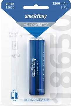 Аккумулятор Li-ion 18650 2200мАч SmartBuy 1xBL 3.7V без защиты выс.конт. (10/100)