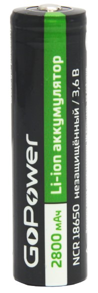 Аккумулятор Li-ion 18650 2800мАч GoPower б/б 1S 3.6V без защиты выс.конт. (80/160)