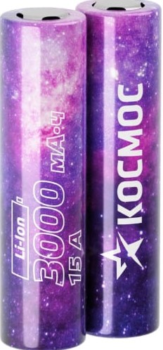Аккумулятор Li-ion 18650 3000мАч Космос б/б 2S 3.7V 15A без защиты плос.конт. высокотоковый (2/50)