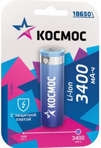Аккумулятор Li-ion 18650 3400мАч Космос 1xBL 3.7V без защиты выс.конт. (50)