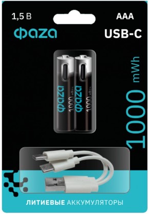 Аккумулятор Li-ion R 3 1000мАч Фаzа 2xBL USB-C +кабель (20)