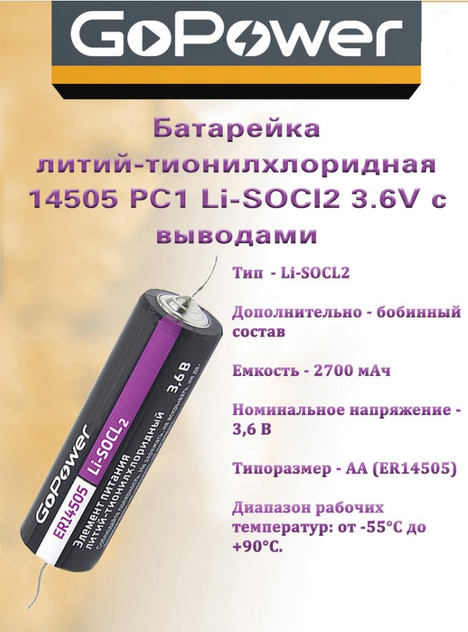 Батарейка ER14505 GoPower 3,6V с выводами (10/500)