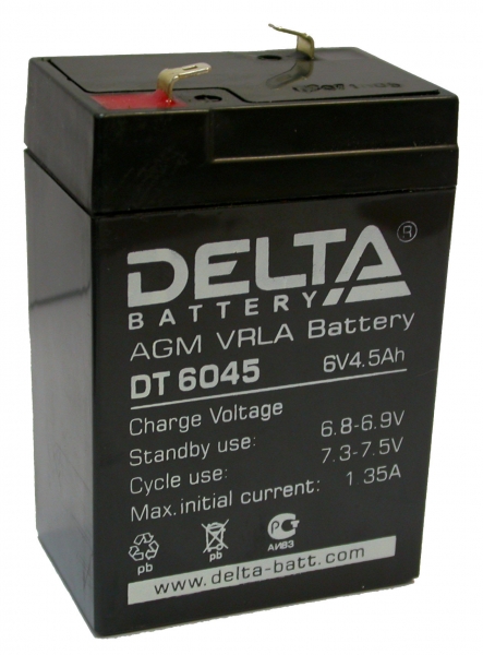 Аккумулятор Delta VRLA 6- 4.5 (6V, 4.5Ah, 70x47x100мм) (20)