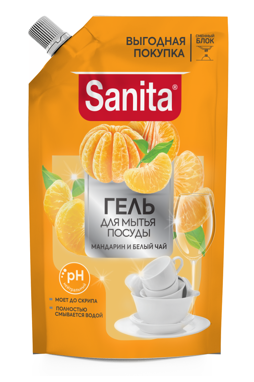 Ср-во д/посуды Sanita 900г Мандарин и белый чай дой-пак (6) акция