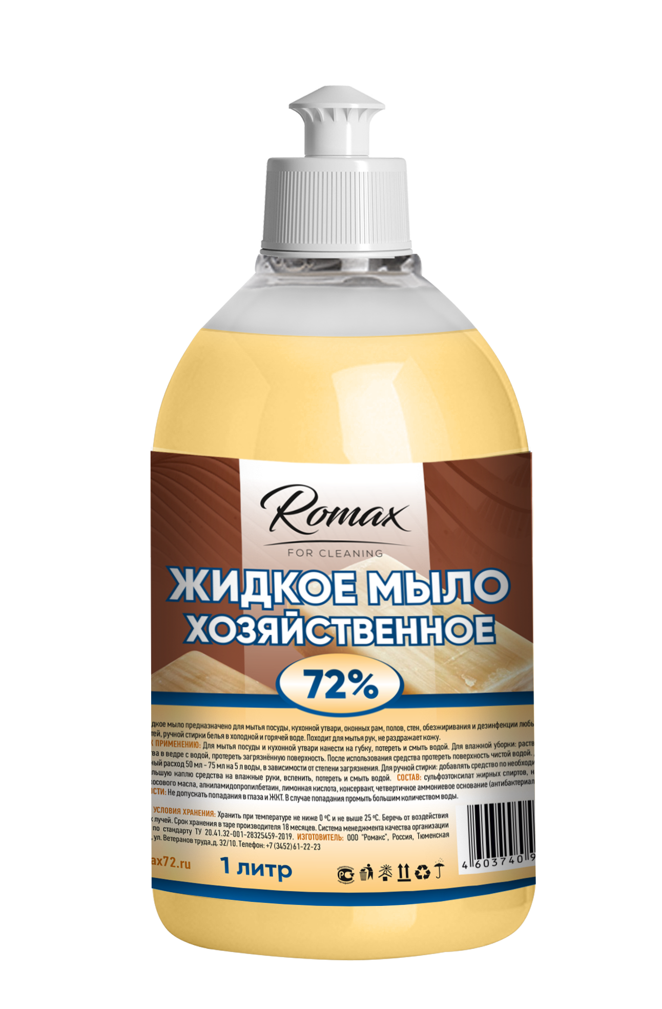 Мыло хоз жидкое 1л RoMaX 72% пуш-пул (8/576)