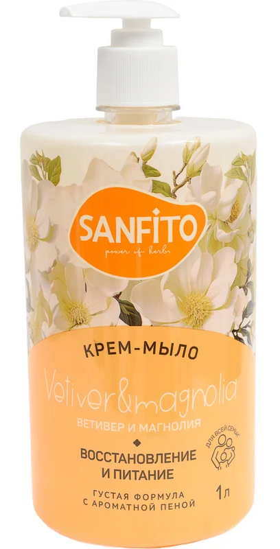 Мыло крем 1л Sanfito Ветивер и магнолия дозатор (8)