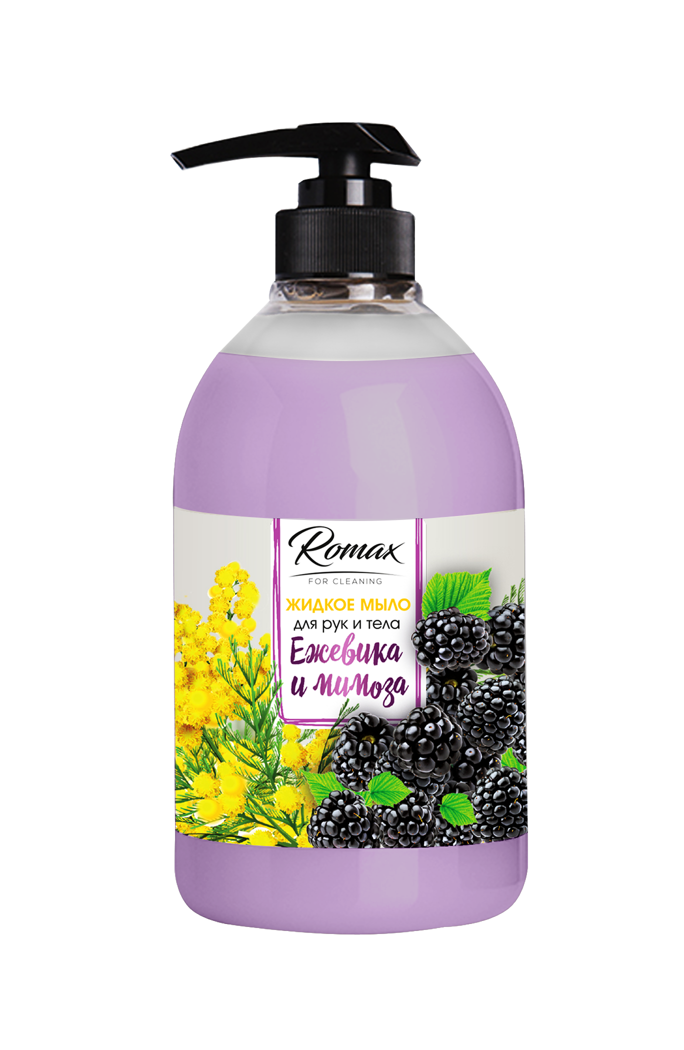 Мыло жидкое 1л RoMaX дозатор Ежевика и мимоза (4/8)