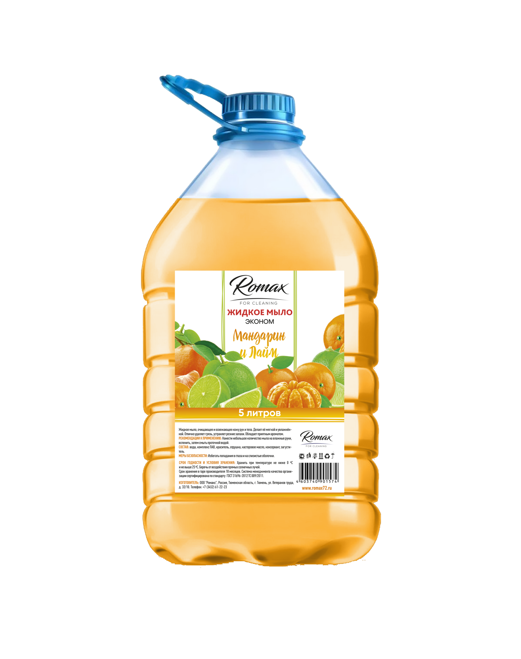 Мыло жидкое 5л RoMaX Мандарин и лайм ПЭТ (144)