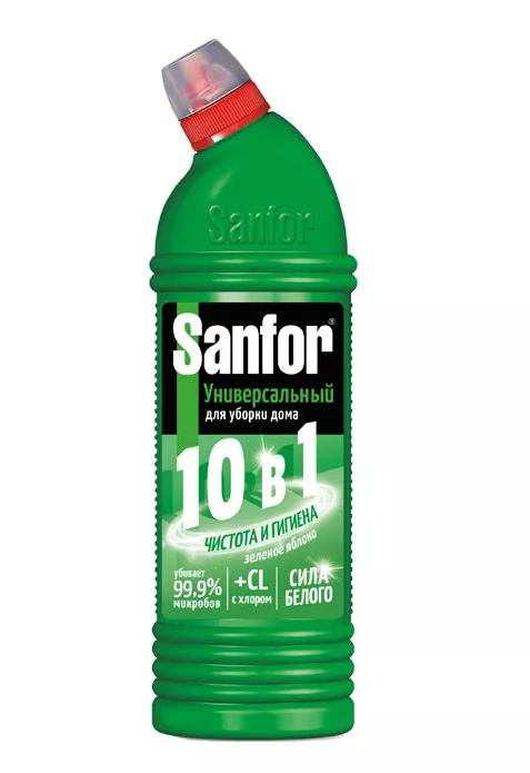 Ср-во д/уборки Sanfor 750г универсал Зеленое яблоко с хлором (15)