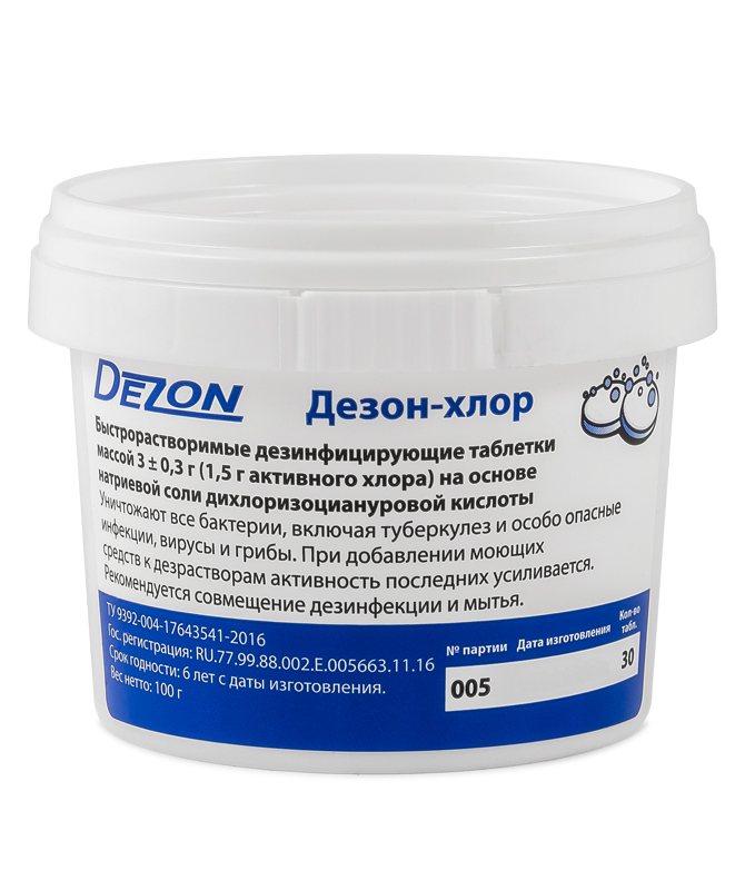 Хлорные таблетки д/дезинфекции Дезон-Хлор 0,1кг 30шт х3,2гр банка (16)