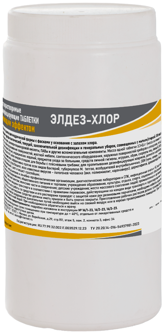 Хлорные таблетки д/дезинфекции Элдез-Хлор 1кг 300шт х3,5гр с ПАВ банка (6)
