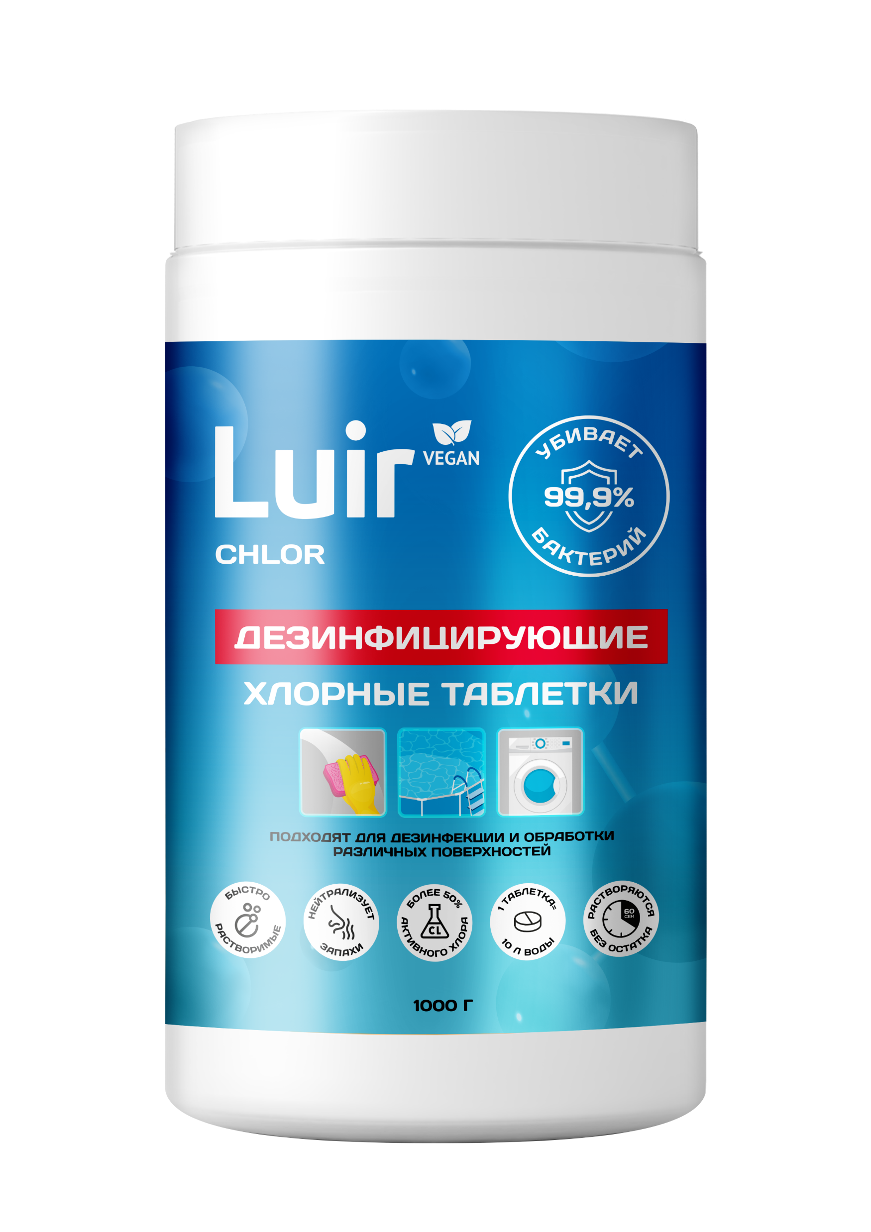 Хлорные таблетки дезинфицирующие Luir Сhlor 1кг (10)