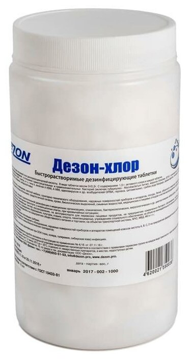 Хлорные таблетки для дезинфекции Дезон-Хлор 1кг 300шт х3,5гр банка (10)