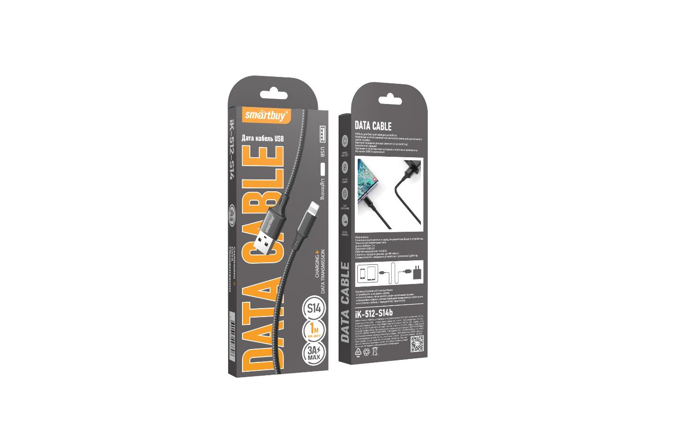 Кабель USB-iPhone8pin 1м SmartBuy S14 3A чёрный коробка (1/50)