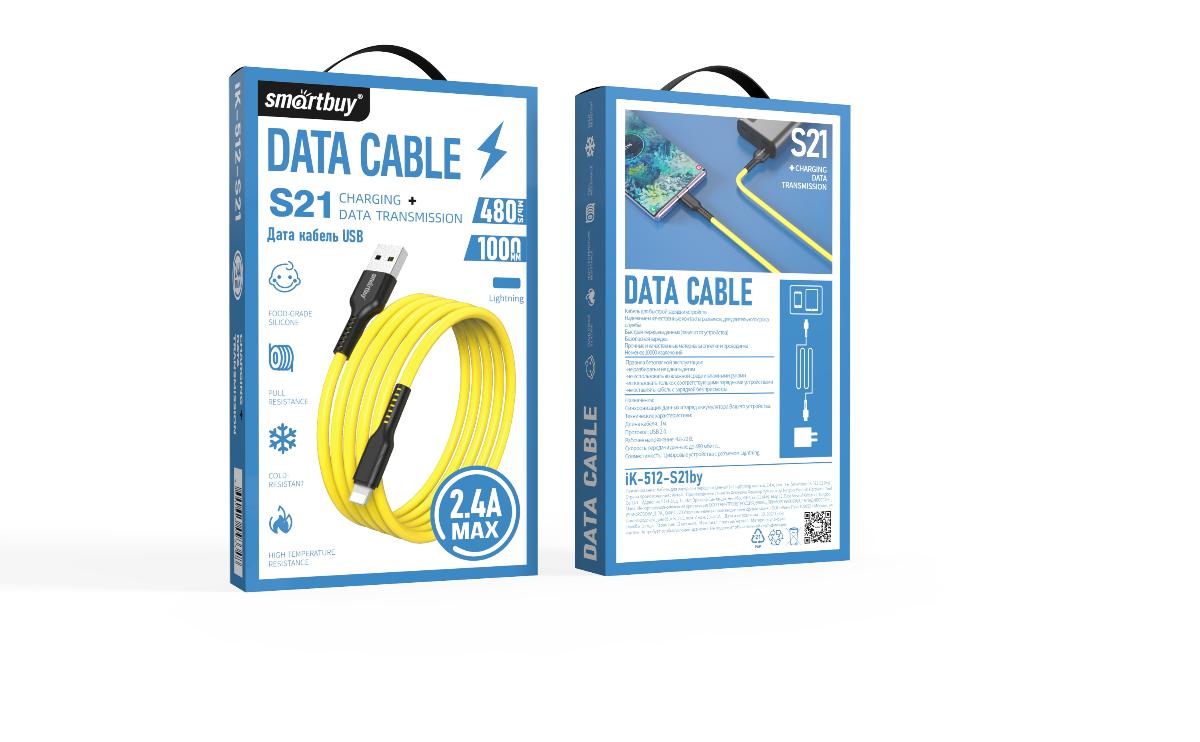 Кабель USB-iPhone8pin 1м SmartBuy S21 2.4A силиконовый жёлтый коробка (1/50)