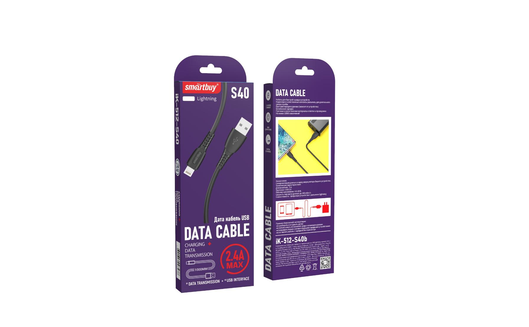 Кабель USB-iPhone8pin 1м SmartBuy S40 2.4A чёрный коробка (1/50)