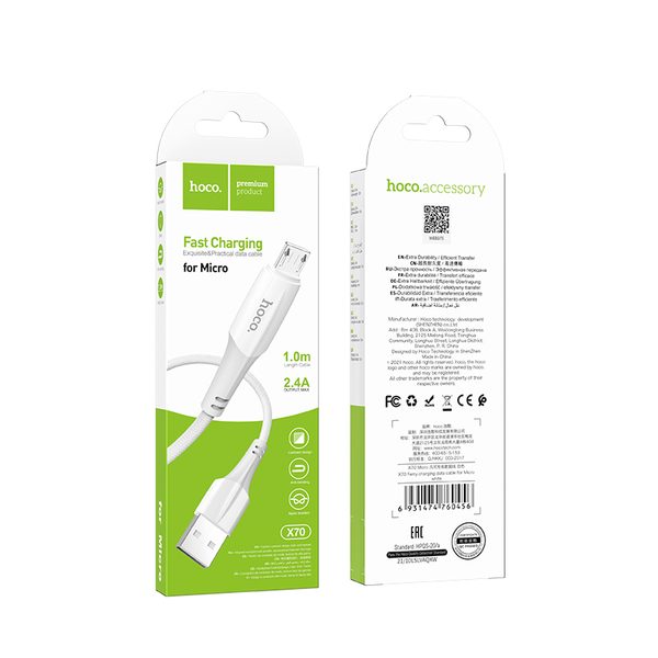 Кабель USB-microB 1м Hoco X70 2.4A нейлон белый коробка (1/31/310)