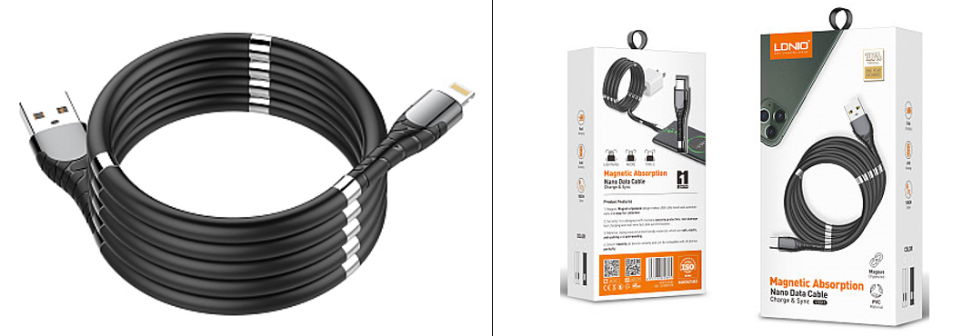 Кабель USB-microB 1м LDNIO LS511 магнитная оплетка 2.4A черный коробка (1/200)