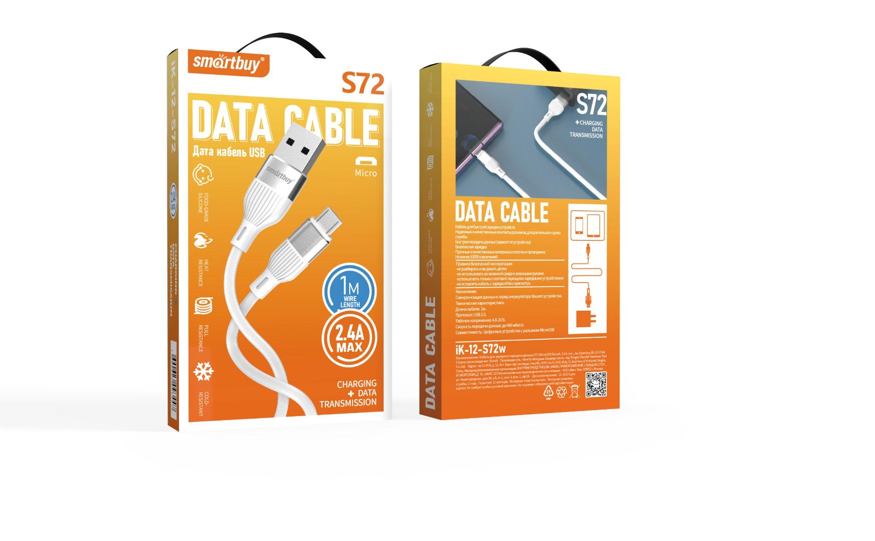 Кабель USB-microB 1м SmartBuy S72 2.4A силиконовый белый коробка (1/50)