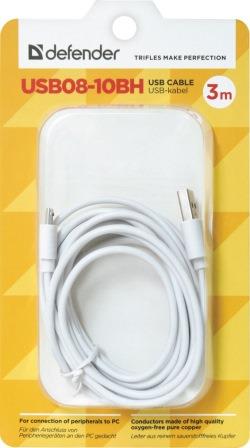 Кабель USB-microB 3м Defender белый 1BL (20)