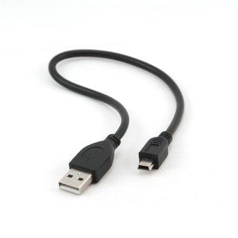 Кабель USB-miniB 0.3м Cablexpert 2.4A медь двойной экран чёрный пакет (1/500)