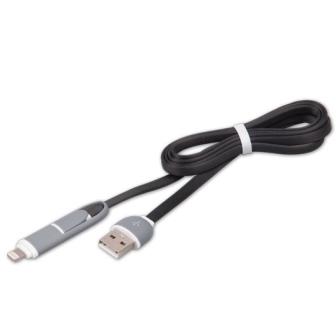 Кабель Ritmix RCC- 200 USB (A male) - USB (microB male 5P) + iPhone 8-pin DC 003, 1м, черный (1/50)