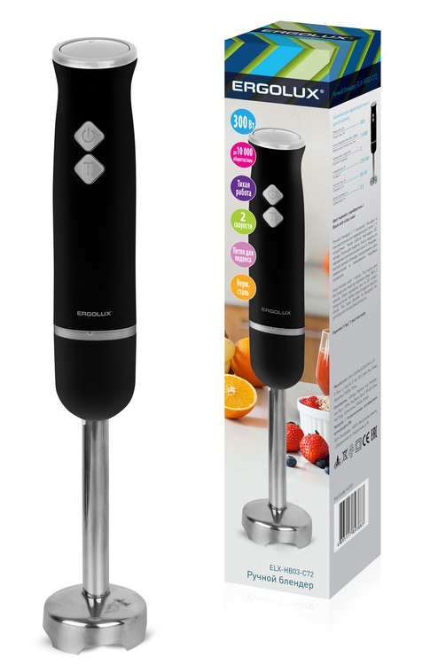 Блендер погружной Ergolux ELX-HB03-C72 300Вт сталь черный (24)