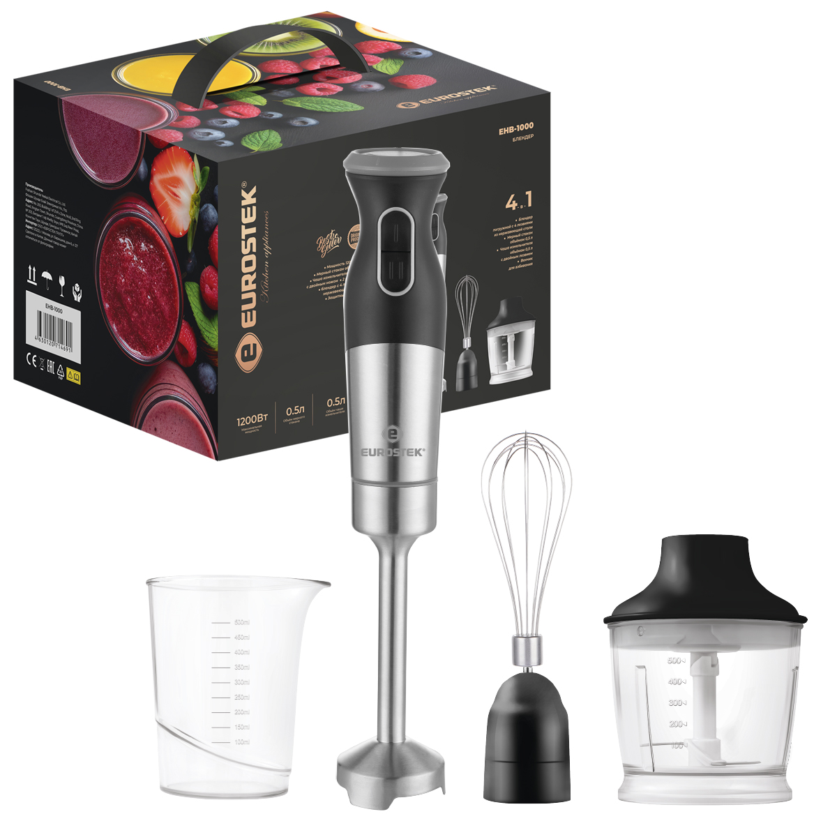 Интернет-магазин «Витрина 59» предлагает купить товар «Блендер погружной Eurostek EHB-1000 1200Вт 2 скорости чёрный/серебристый (1/8)» по цене: 2 692.00 руб. Артикул товара - EHB-1000. Вы можете оформить заказ через интернет-магазин или по телефону +7 (950) 45-67-67-6. Дополнительную информацию о продаже товаров из каталога «Бытовая техника, аксессуары для сотовых» вы можете получить у нашего менеджера. Звоните!