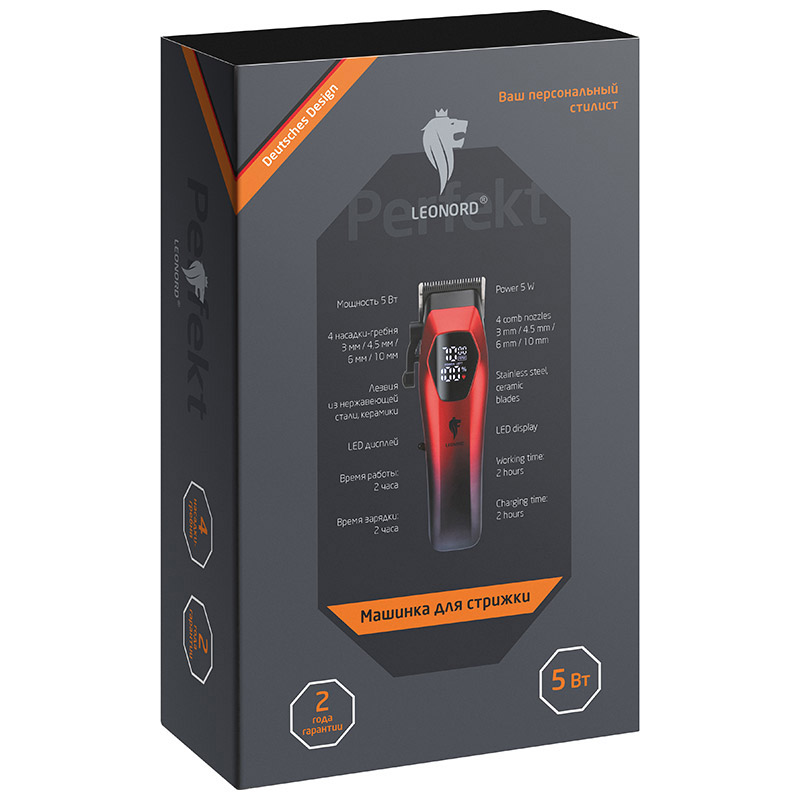 Машинка для стрижки Leonord LE-1239 5Вт аккумуляторная 4 насадки LED-дисплей (1/40)
