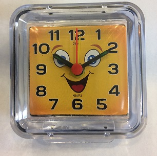 Будильник 21 ВЕК квадрат 7*7см Смайлик с улыбкой корпус прозрачный кварцевый механизм (1/40)