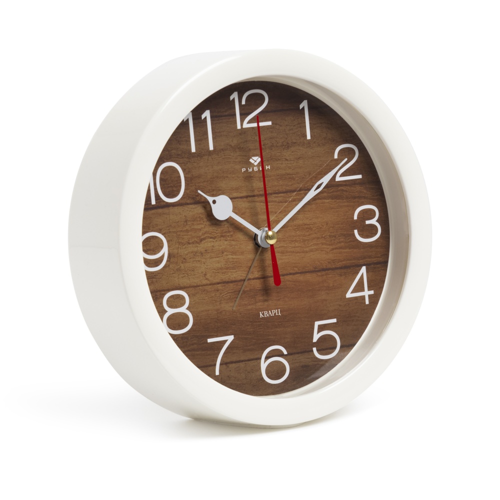 Будильник круг d15 Дерево корпус белый Рубин (1/20)