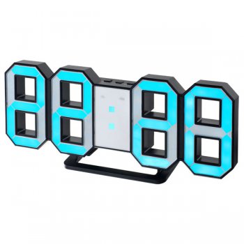 Часы Perfeo LUMINOUS цвет табло синий LED, высота цифр 8 см, будильник, CR2032 для сохранения настроек, регулировка яркости, питание USB, черный (PF-663) (1/20)