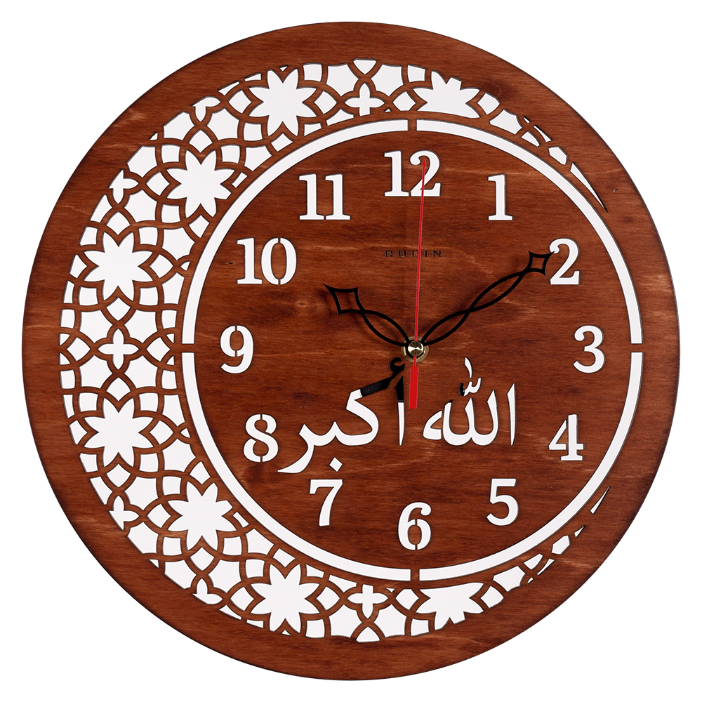 Часы настенные круг дерево d35 Мусульманские корпус коричневый открытая стрелка Рубин (1/10)