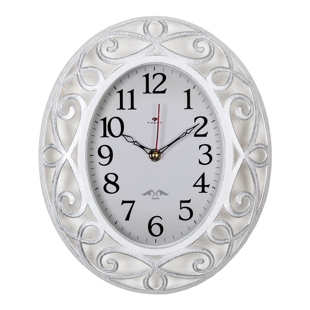 Часы настенные овал пластик 31*26 Классика корпус белый с серебром Рубин (1/10)