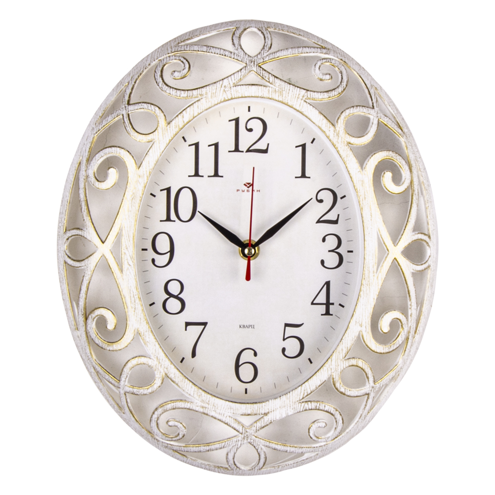 Часы настенные овал пластик 31*26 Классика корпус белый с золотом Рубин (1/10)