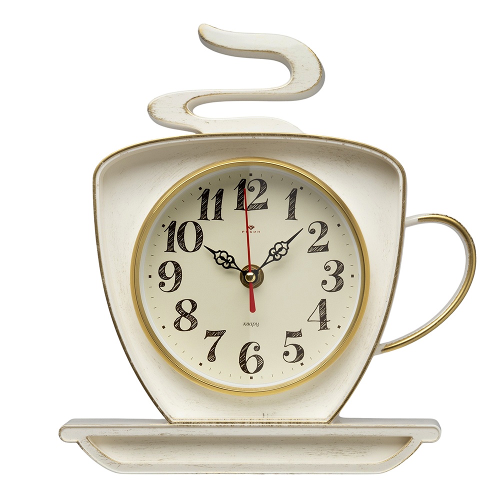 Часы настенные Рубин чашка пластик 25*24 корпус белый с золотом (1/10)