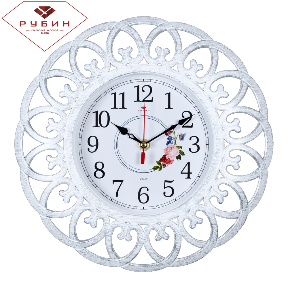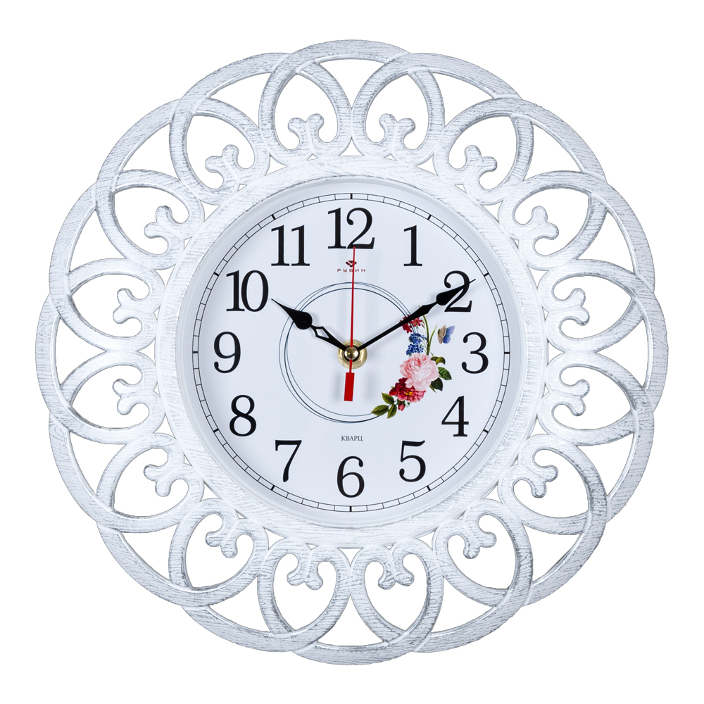 Часы настенные Рубин круг пластик 30*30 "Адажио" корпус белый с серебром (1/10)