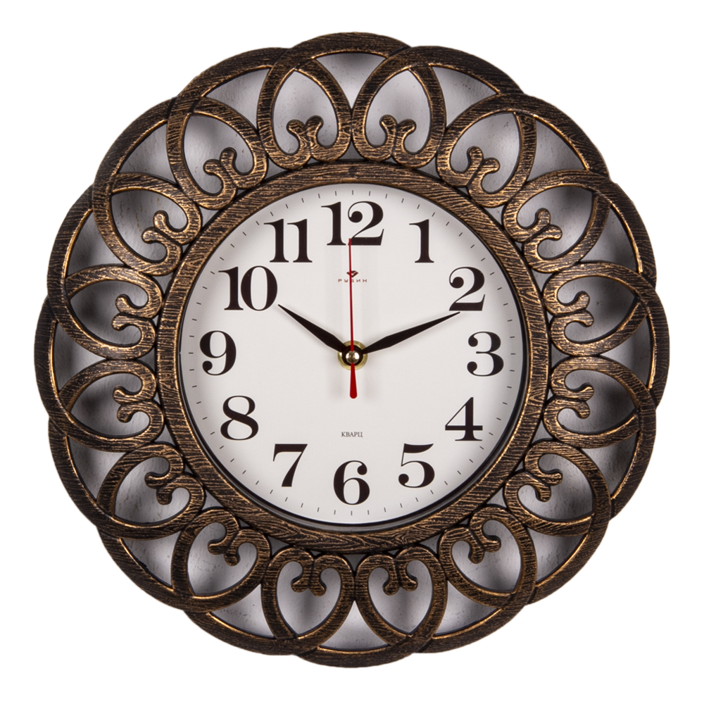 Часы настенные Рубин круг пластик 30*30 "Классика" корпус черный с бронзой (1/10)