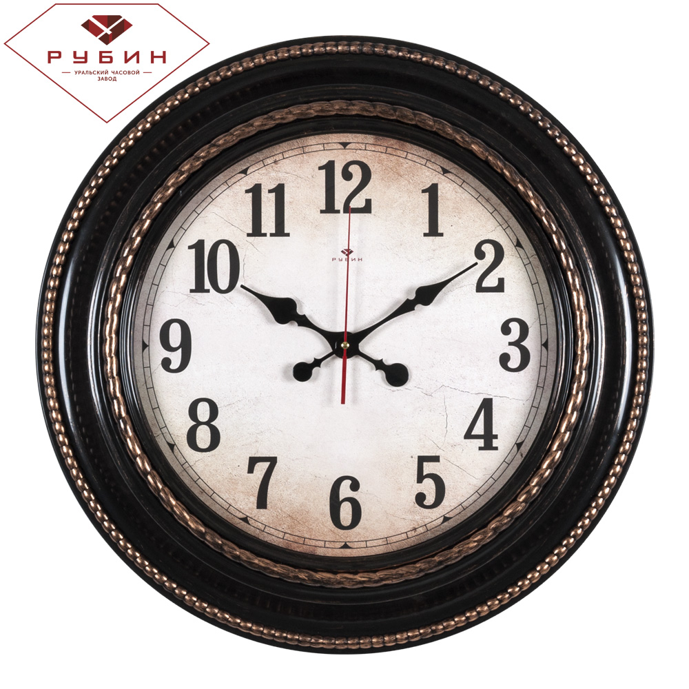 Часы настенные Рубин круг пластик 60*60 "Классика" корпус черный с бронзой (1/5)*