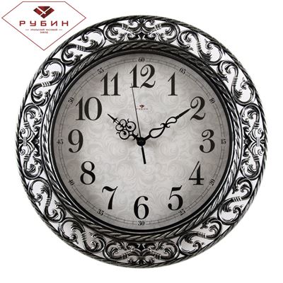 Часы настенные Рубин круг с узором пластик 39,5*39,5 Классика корпус черный с серебром (1/5)